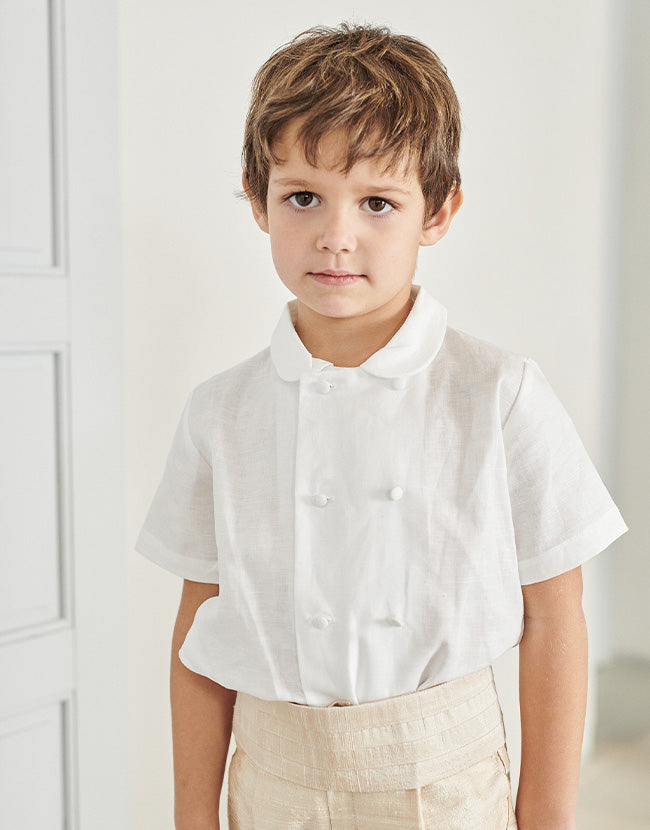 Make your special day even more magical with La Coqueta's Luisa Ceremony Girl Dress, the perfect attire for your little princess. Crafted from the finest blend of cotton and linen, this special occasion dress is lightweight and gentle on even the most delicate skin, ensuring your daughter stays comfortable throughout the celebration. The Luisa Dress pays meticulous attention to delicate details, featuring a feminine fit and flare silhouette and a flowing skirt lined with super-soft cotton for added comfort. Rendered in a classic shade of ivory, it is adorned with French lace trims around the neckline and short puffed sleeves, with delicate bans of lace across the bodice, and exquisite butterfly frill details down the shoulders. Fastening with mother of pearl buttons at the back, the dress is finished with a charming oversized self-tie bow. Whether she's a flower girl or a bridesmaid, your little one will truly cherish the elegance and charm of the Luisa Ceremony Girl Dress. Match with a baby sister in the Luisa Ceremony Baby Girl Set for those adorable memories that will last a lifetime.